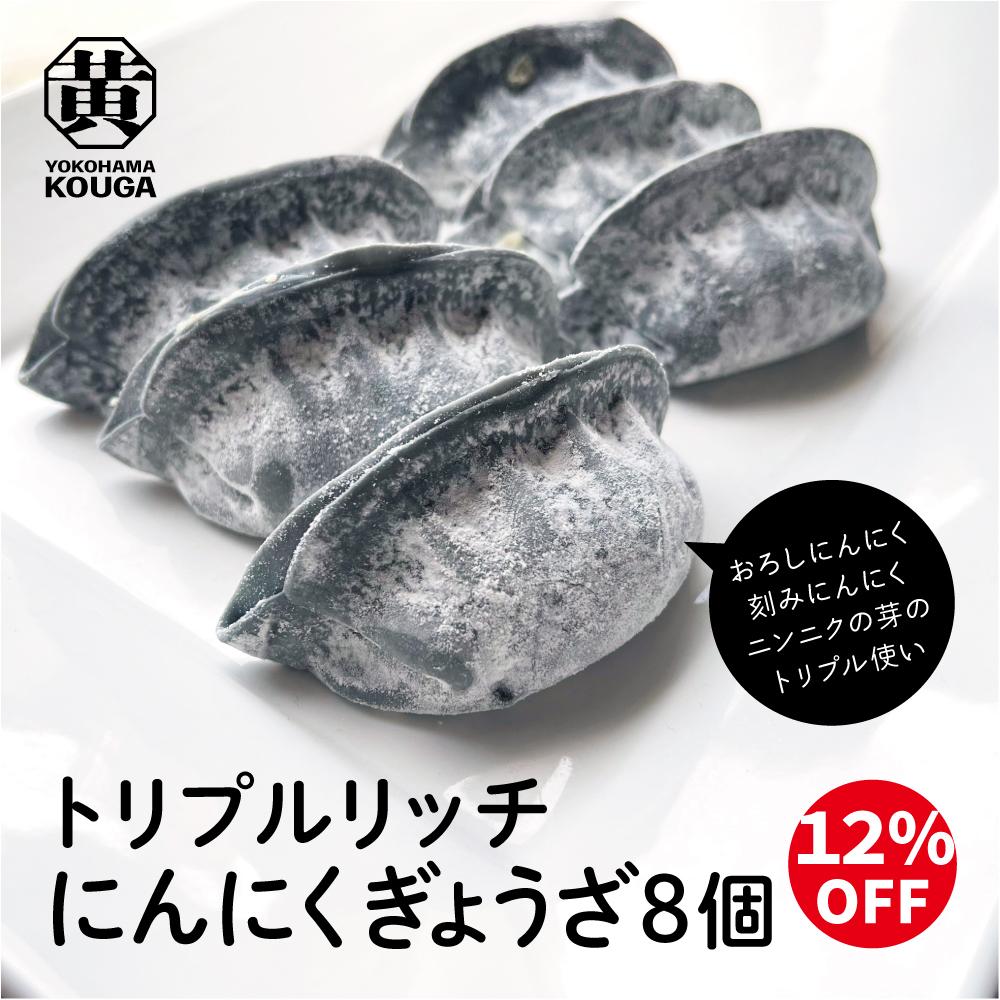 すりおろしにんにく、刻みにんにく、さらにニンニクの芽も使ってトリプル使い。にんにくの辛みはなく、ほっこりとした旨味だけをお楽しみください。竹炭の黒い皮もインパクト!