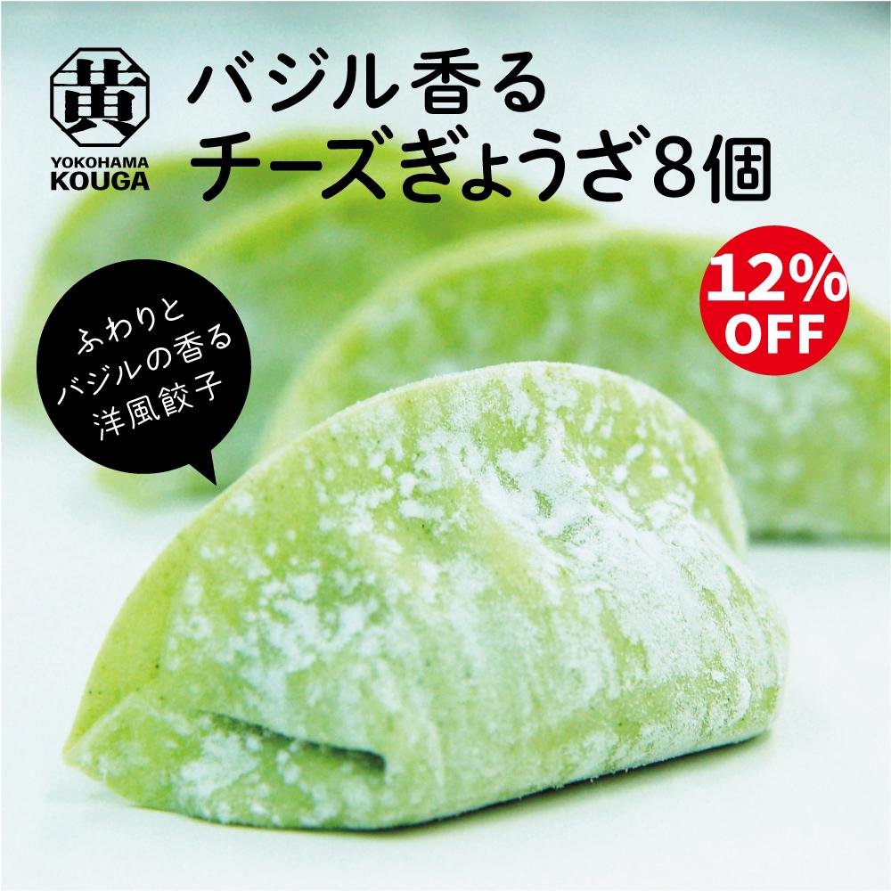 チーズたっぷり。ふわりとバジルの香る洋風餃子です。玉ねぎの甘味、椎茸の旨味を加えました。ほうれん草パウダーを練り込んだグリーンの皮に包まれた、おしゃれな餃子です。